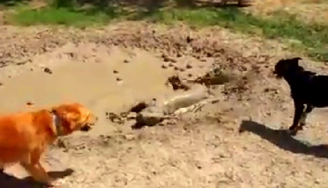 The silly dog dove right in and wallowed in the muck. Other dogs looked on, as if to say, “Get out of there! You’re gonna be in sooo much trouble!”